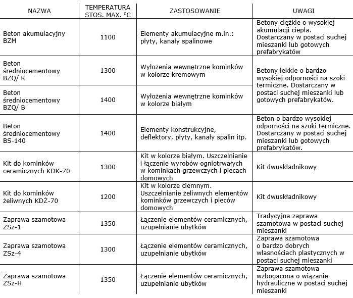 Betony ogniotrwałe, kit do kominków, zaprawa szamotowa, rury, ceramika techniczna i wiele więcej!