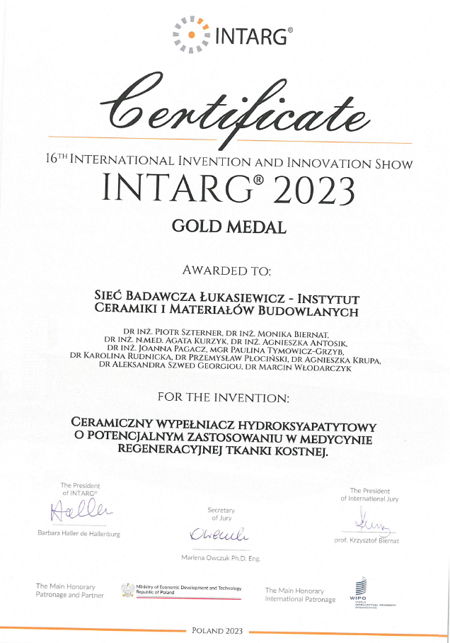 Wynalazek: Ceramiczny wypełniacz hydroksyapatytowy o potencjalnym zastosowaniu w medycynie regeneracyjnej tkanki kostnej